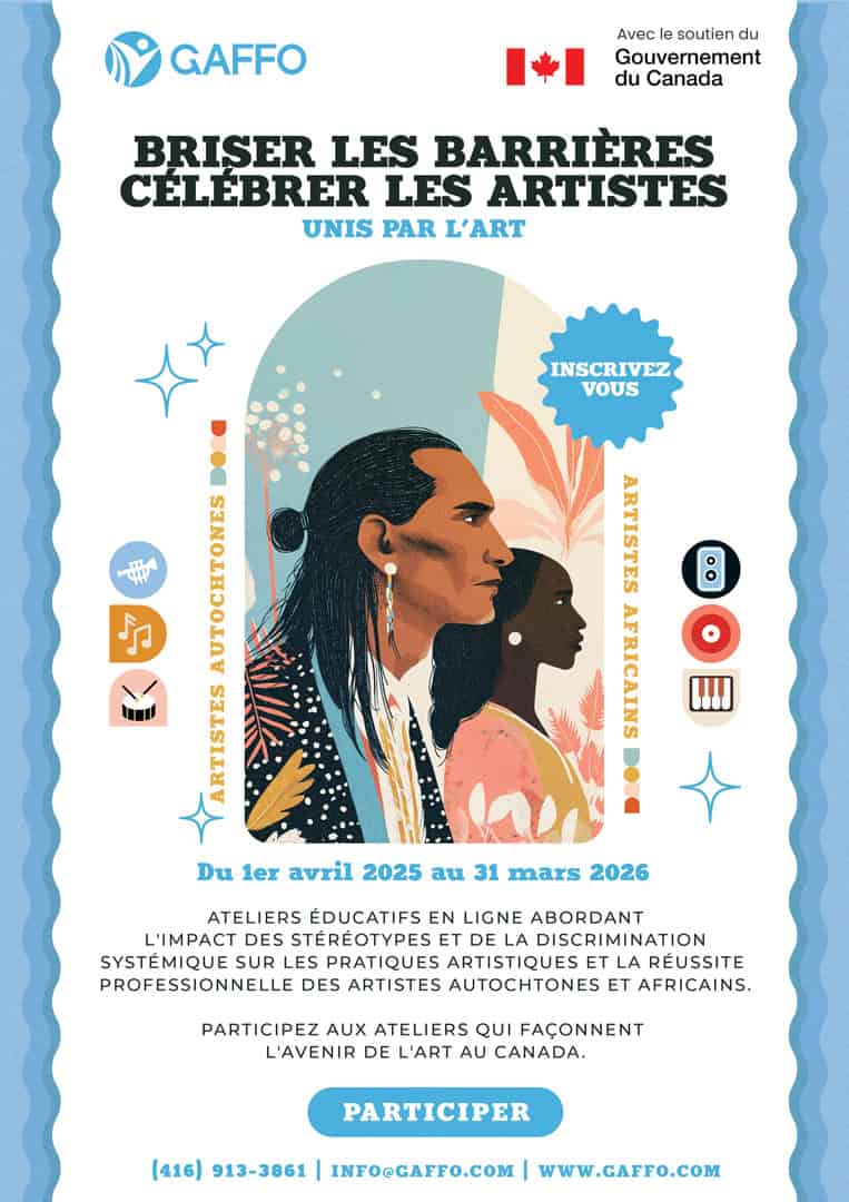 Ateliers éducatifs en ligne abordant l’impact des stéréotypes et de la discrimination systémique sur les pratiques artistiques et la réussite professionnelle des artistes autochtones et africains. Participez aux ateliers qui façonnent l’avenir de l’art au Canada.