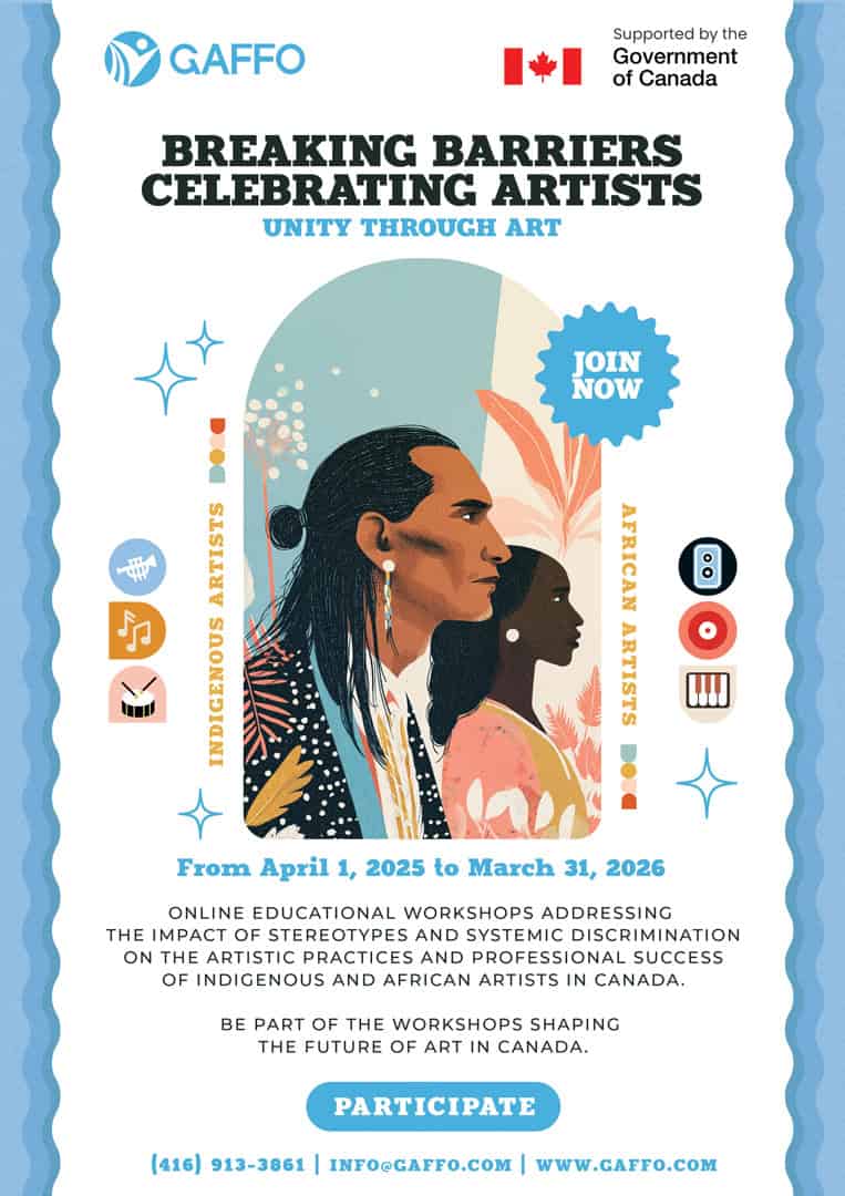 Online educational workshops addressing the impact of stereotypes and systemic discrimination on the artistic practices and professional success of indigenous and African artists in Canada. Participate be part of the workshops shaping the future of art in Canada